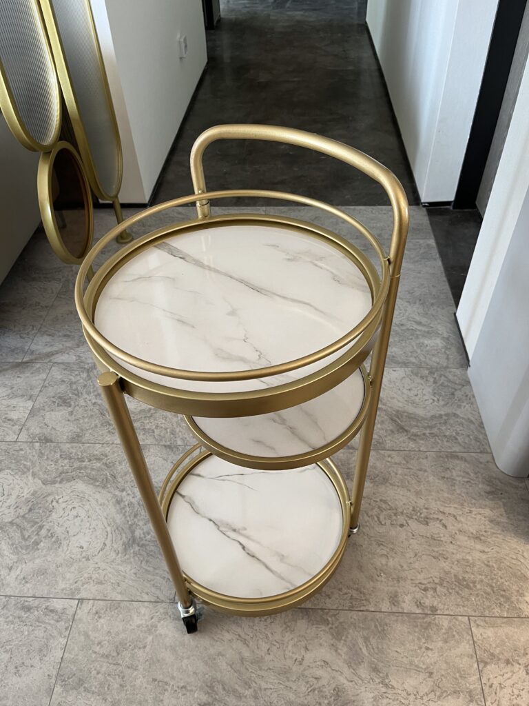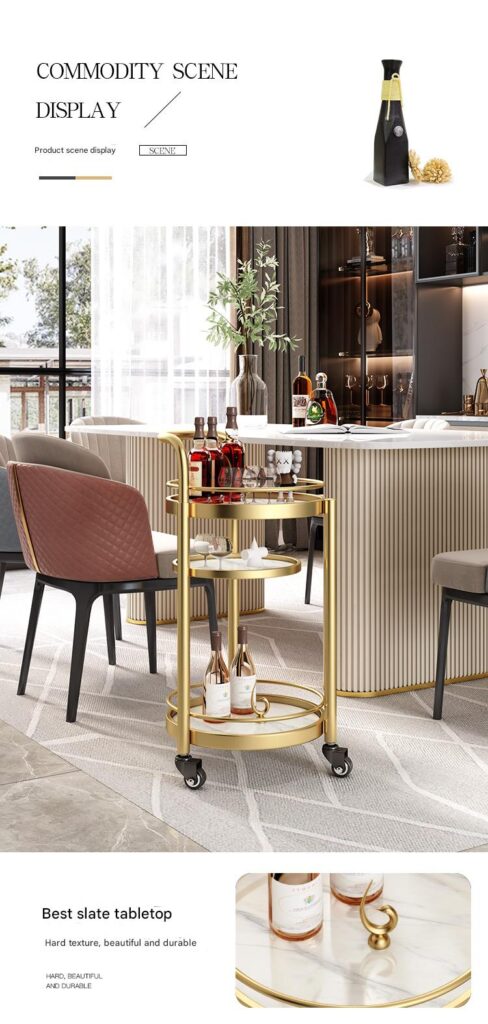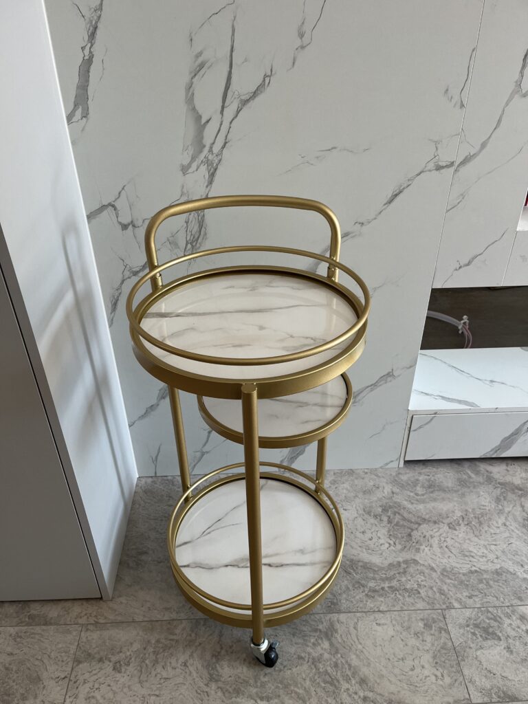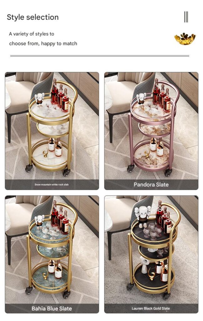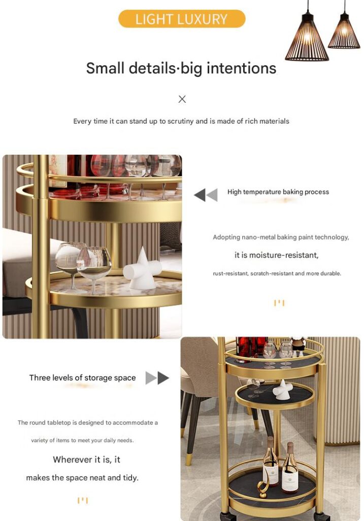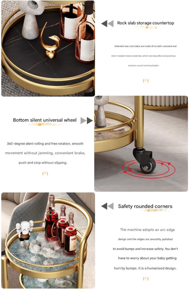This car was delivered very quickly and no installation is required! I like this look. It’s very cute. I searched for a long time before I saw such an artistic little cart. There are quite a lot of things placed on it, making it look more elegant. I like gold. The color is very beautiful. Overall, I’m very satisfied with the price, appearance, operability and capacity.
