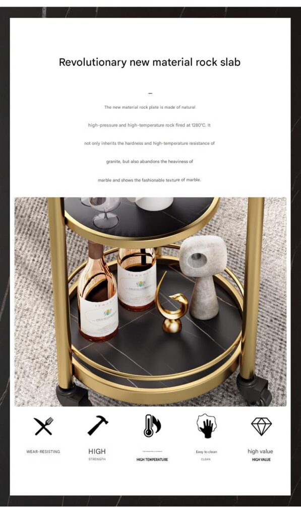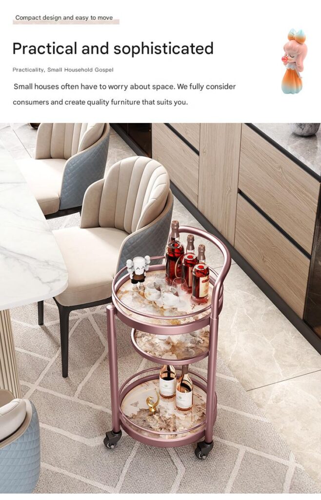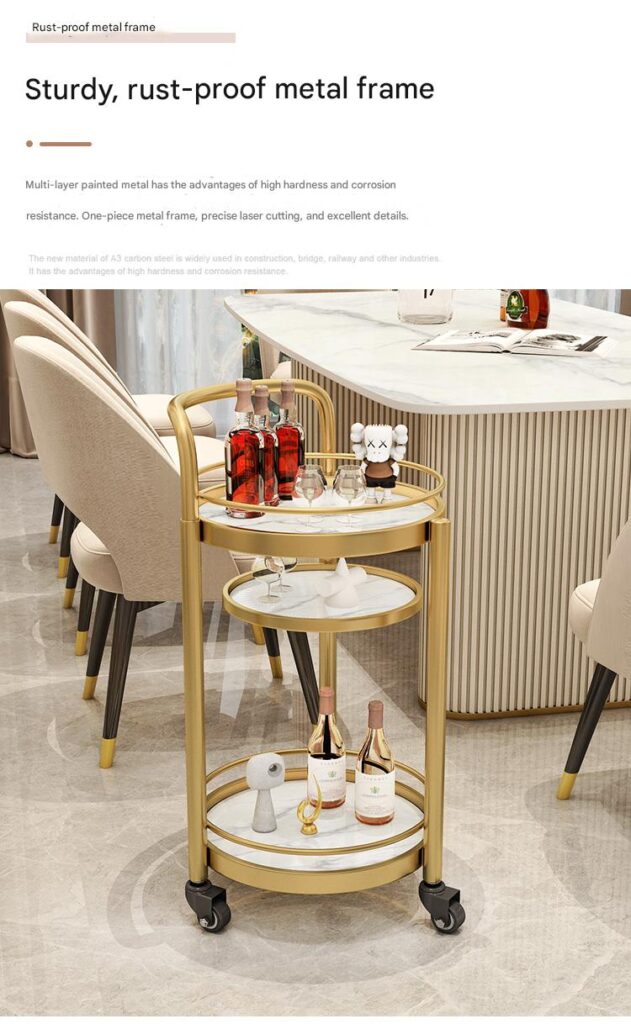 My roommate and I both really like this bar cart in our apartment. It is very durable and exquisitely made. It is equipped with lockable wheels, making it convenient to move at any time.