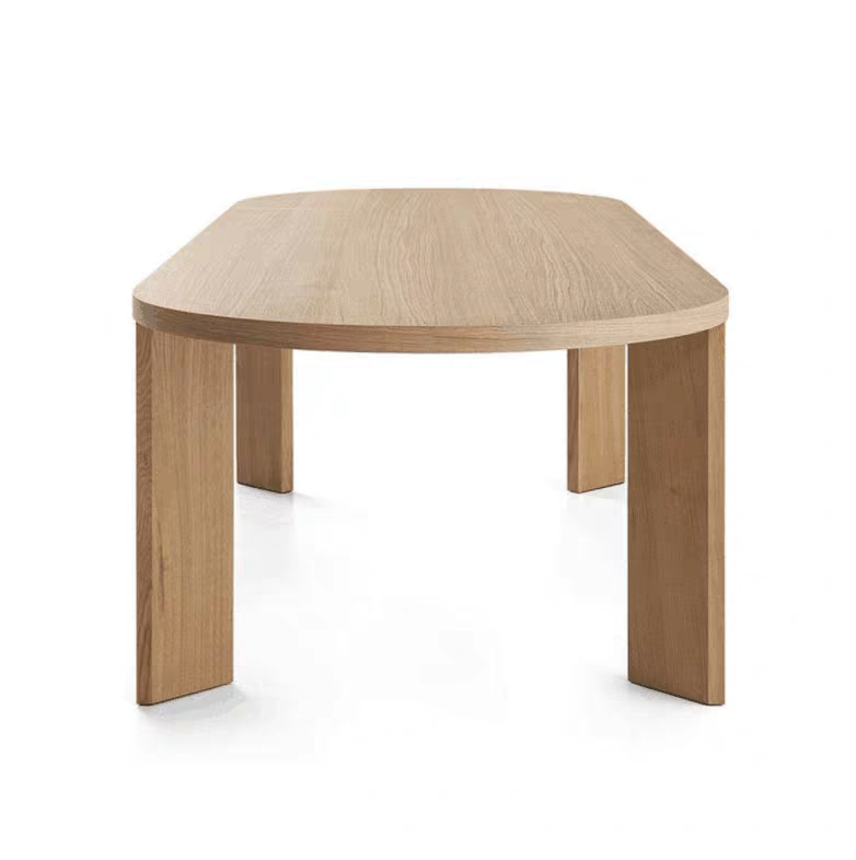 Modern minimalist solid wood oval multi-person office and meeting table, long table for living room, multi-functional dining table, desk for writing and using computer – one table with multiple functions.